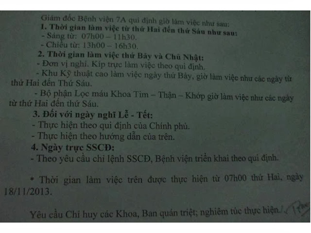 cán bộ, chiến sỹ, CNVQP của Bệnh viện 7A năm 2013 của Bệnh viện và triển khai thực hiện như sau: